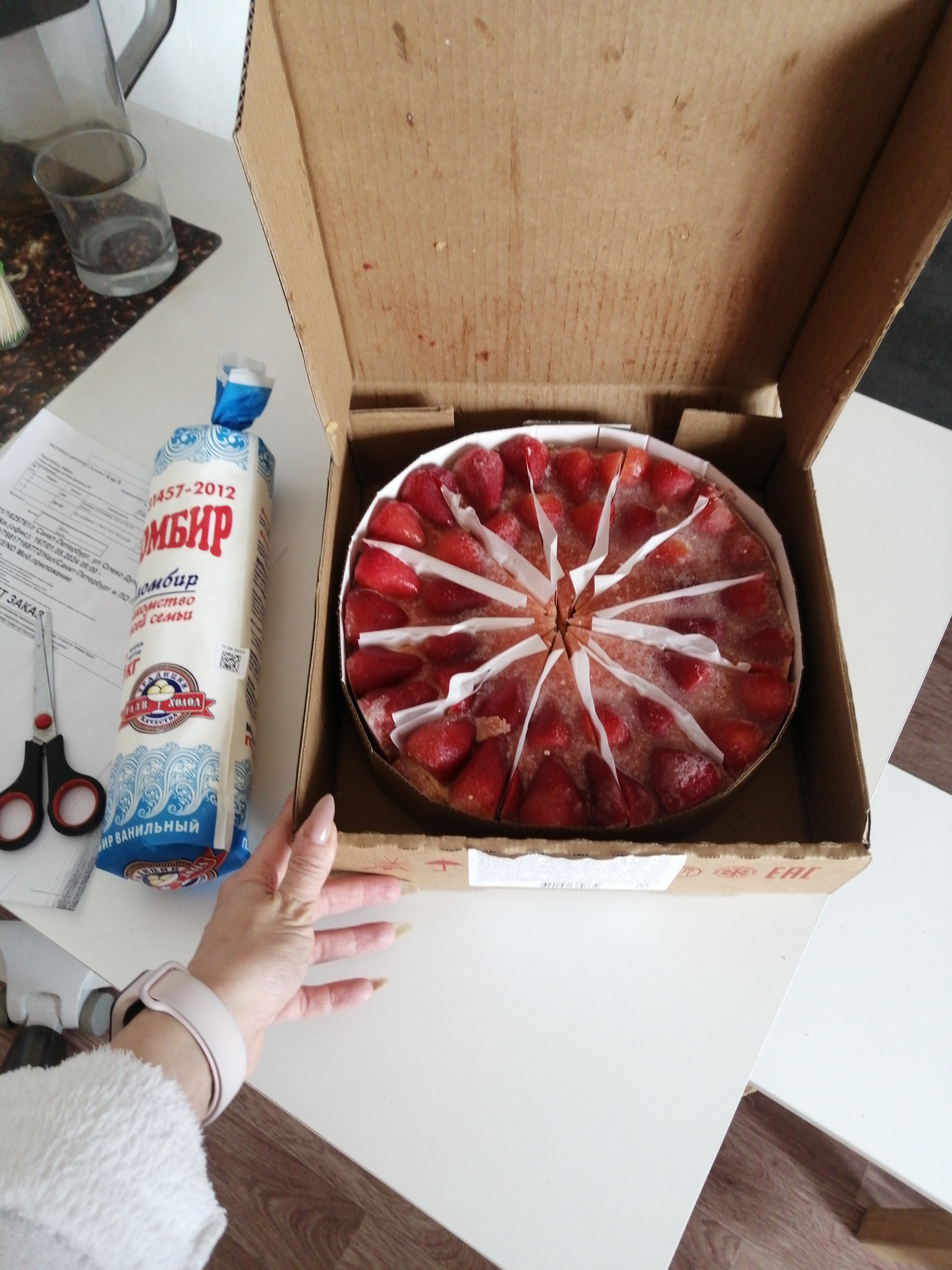 Торт красивый, яркий, клубника конечно не такая свежая как на картинке, но всем очень понравилось В меру сладкий, не приторный Единственное это нижний слой печенья, немного чувствуется кристаллики сахара, не до конца растворился