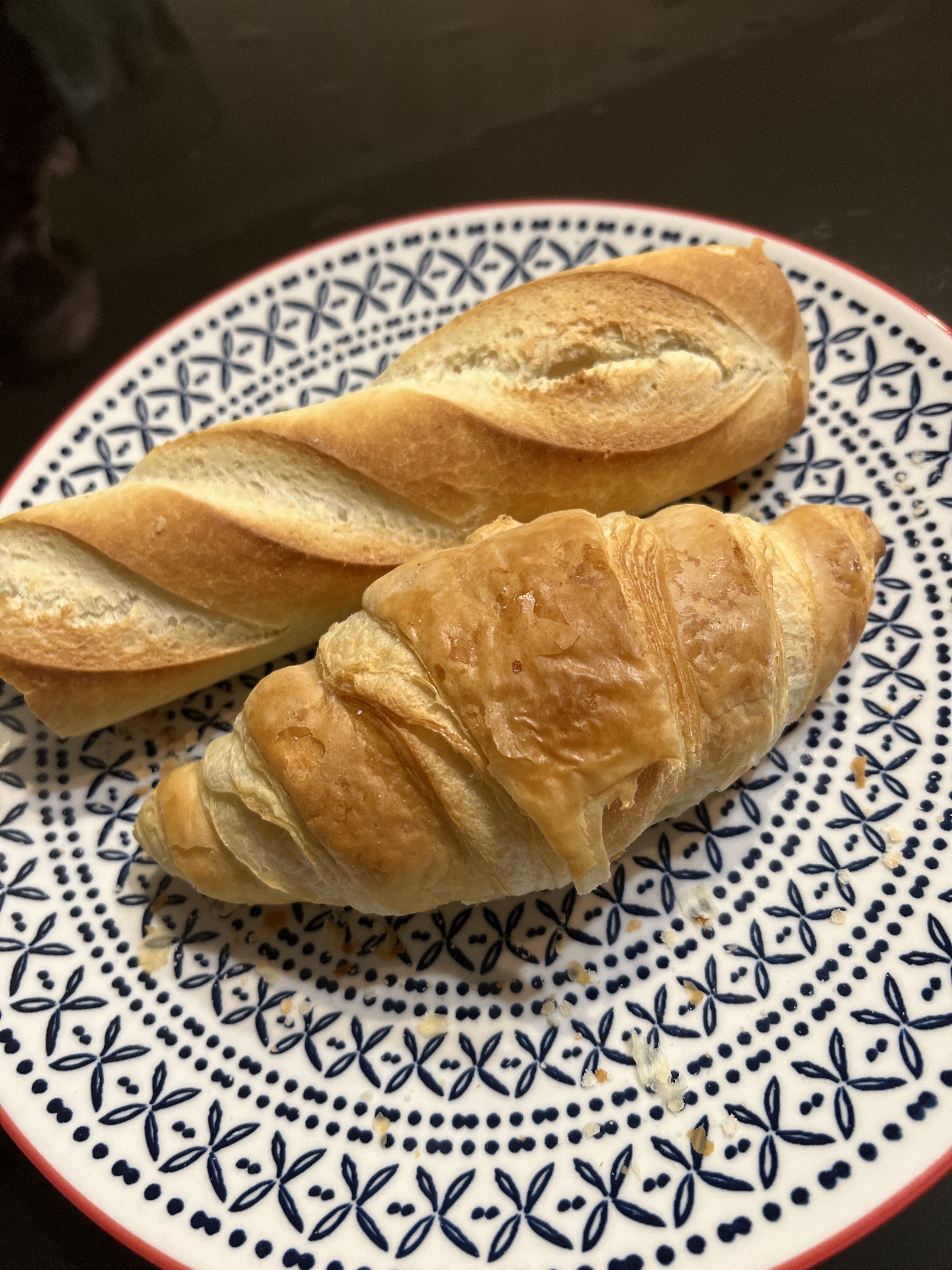 Круассан вкусный, большой. Но все таки не такой маслянистый. Больше подходит именно для того, что бы его начинить.