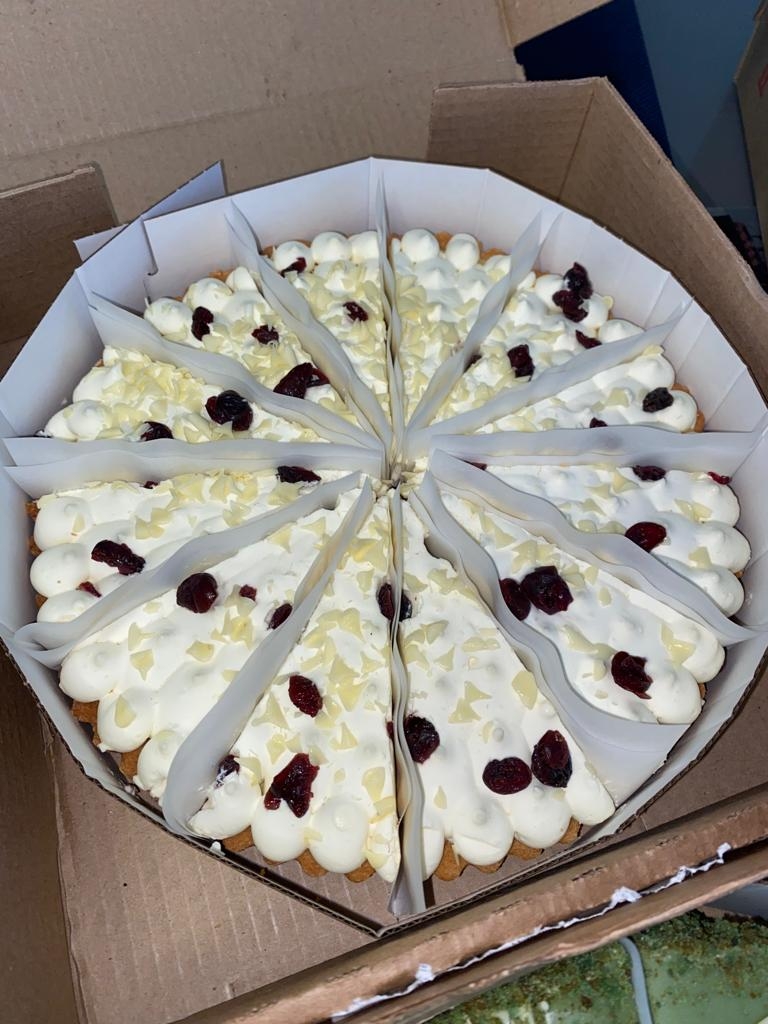 Очень вкусный торт! Покупала нарезанный и не нарезанный. Оба суперские! Сочетание ягод кисленьких с нежнейшим кремом и крошкой белого шоколада... И всё это в вкусной песочное тарталетке. Советую всем попробовать такой торт!
