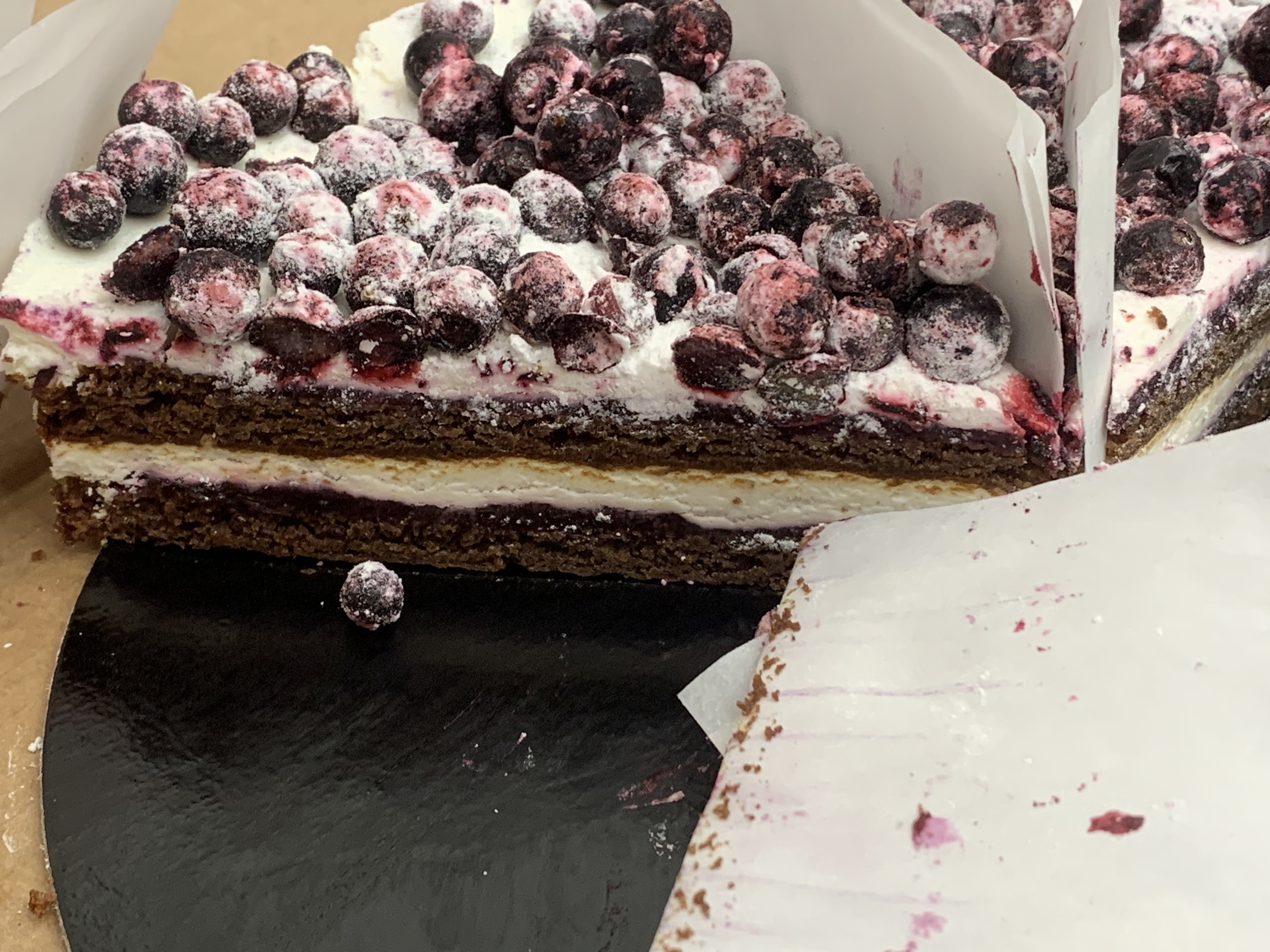 Брала торт на женский коллектив. Черная смородина кислит, что хорошо со сладким ( пломбирным) кремом .
