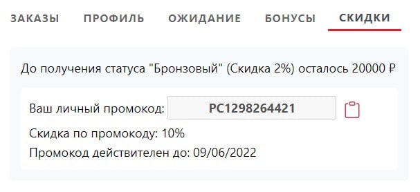 воспользоваться бонусами. Если при применении промокода или персональной скидки сумма скидки менее 5%