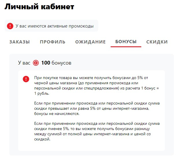 персональной скидки или спецпредложения) из расчета 1 бонус = 1 рубль. Если при применении промокода или