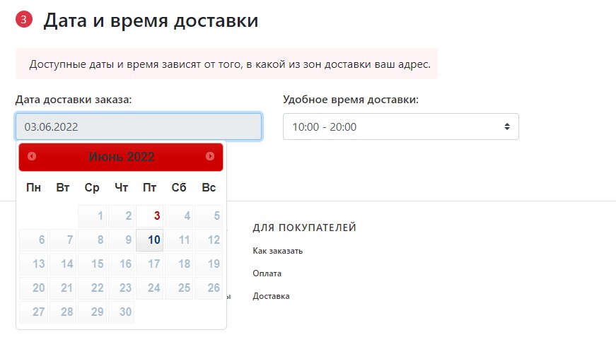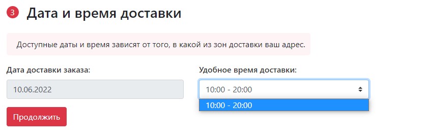 день, либо любой другой день. Дату доставки и время доставки можно выбрать в корзине заказа. Доставка