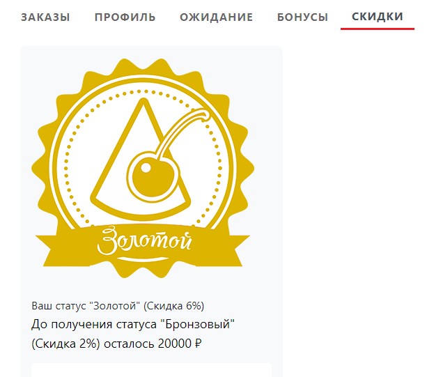стоимости. Ваш текущий статус, скидку, и сумму, оставшуюся до присвоения следующего статуса, можно уточнить